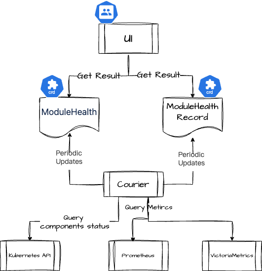 - Regularly monitor component status: Courier will watch ModuleHealth, check the specified functions, and then write the inspection results to the CR resources of ModuleHealth and ModuleHealthRecord.
