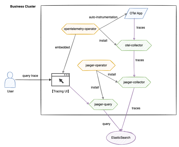 User -> Tracing UI -> jaeger-query -> Elasticsearch